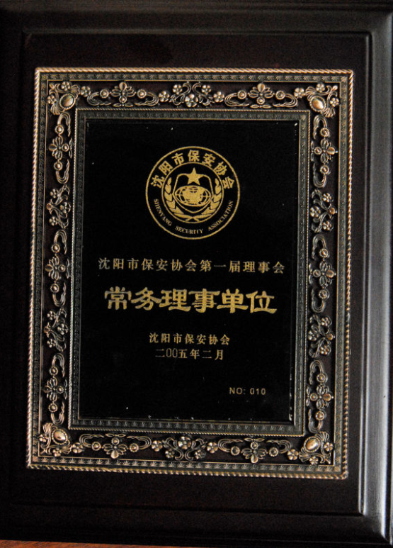 1、2004年,公司被推選為中保協會員單位,省市保協常務理事單位; 2、04年至今,公司被市工商局評為“重合同守信用”免檢單位; 3、04年至今,公司連年被省廳授予“全省優秀保安公司”; 4、04年至今,公司連年被市局授予“沈陽市十佳保安公司”; 5、2008年,公司被省廳、市局授予“奧運安保先進單位”; 6、2009年,全市保安系統績效考評中,公司以佳績贏得“流動紅旗”;